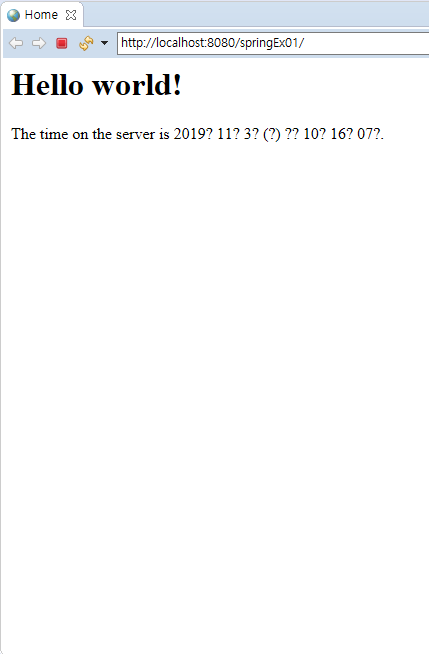 하지만 2019? 11? 3? (?)처럼 인코딩이 깨져서 나오고 있네요 인코딩 설정을 해줘야 합니다.