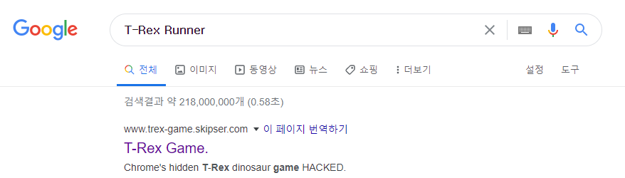 1. 구글에 T-Rex Runner 검색 → 제일 상단에 T-Rex Game. 클릭