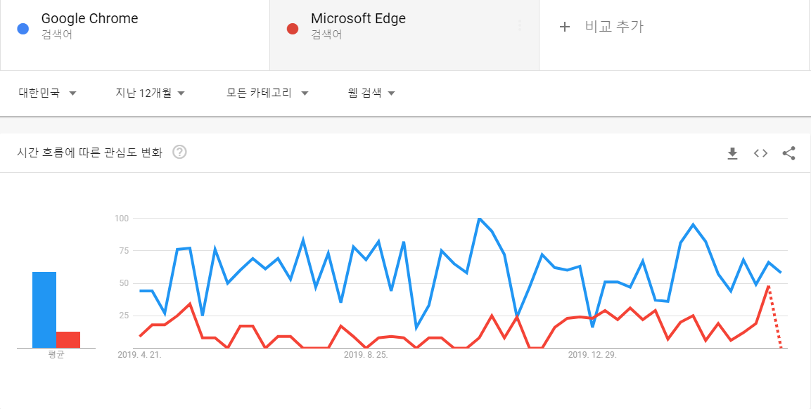 크롬이 압도하는 모습을 볼 수 있습니다. 물론 이게 전부는 아니지만요..