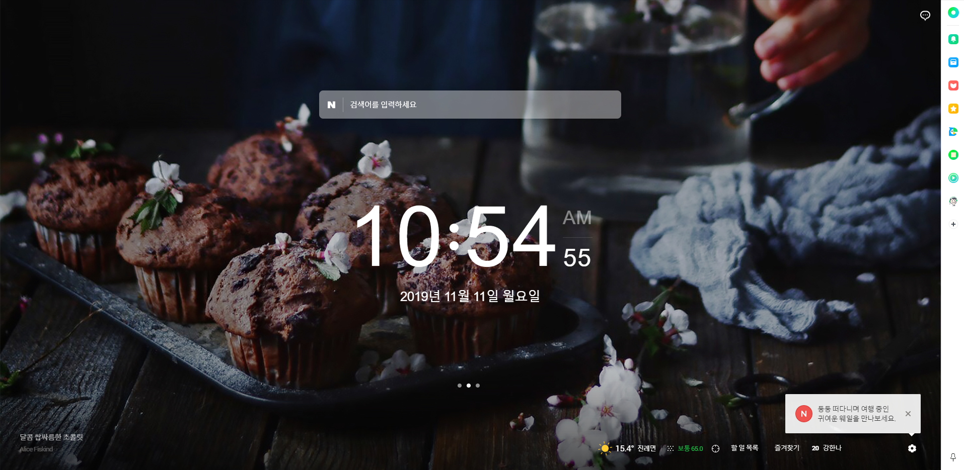 사이드바에는 웹 서핑에 필요한 각종 도구들을 모았습니다. 도구를 꺼내서 쓰거나 밸리에 담아 둔 링크를 다시 읽을 때, 음악 플레이어가 필요할 때는 사이드바 버튼을 클릭하세요.