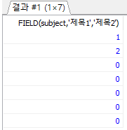 SELECT FIELD(subject,'제목1','제목2') FROM board;
