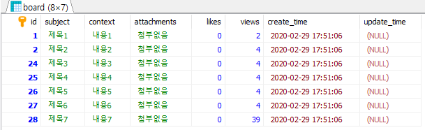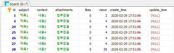 '제목3' 값을 가진 row가 첫 번째, '제목5'을 가진 row가 두 번째로 정렬됐고 그다음 subject 컬럼이 정렬됐다.