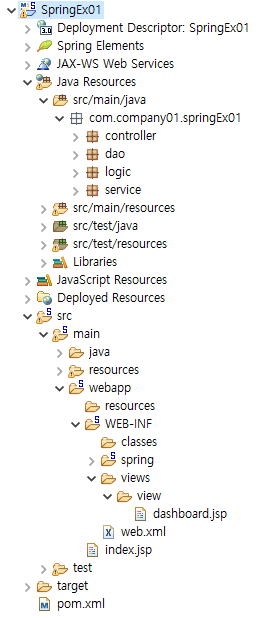 src/main/java : 말 그대로 java 파일들이 모여있는 곳 (Controller,Service,DAO)