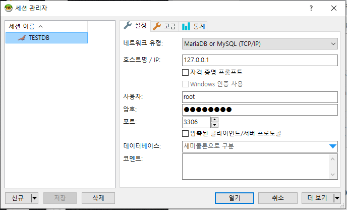 MariaDB 접속 (HeidiSQL 이용)