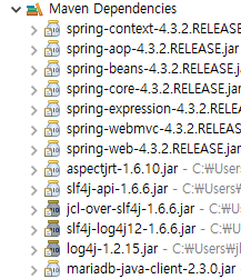 spring version, mariadb-java 잘 받아졌는지 확인